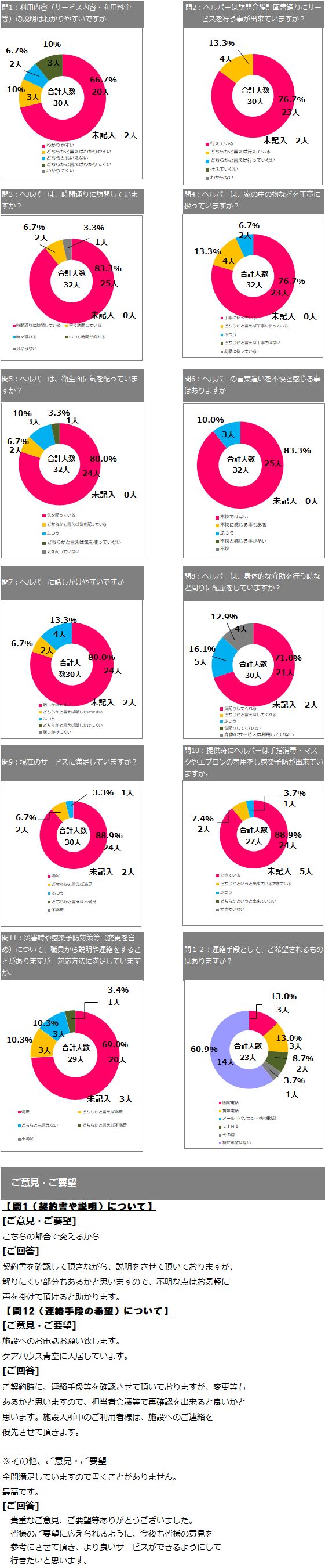 アンケート結果及びご要望事項を真摯に受け止め、職員一同サービスの質の向上を図るべく努力して参ります。今後とも社会福祉法人清明会をよろしくお願い致します。